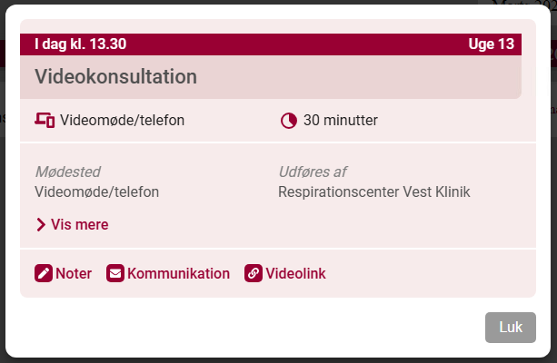 6. For at deltage i videokonsultationen skal din pårørende klikke på videolinket.