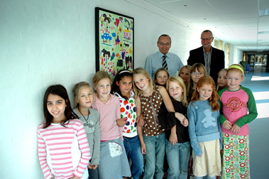 Pigerne fra 3. a på Rosenvangskolen i Århus besøgte onsdag regionsrådsformand Bent Hansen og regionsdirektør Bo Johansen i Viborg, hvor deres maleri ”Drømmebilleder” nu hænger.