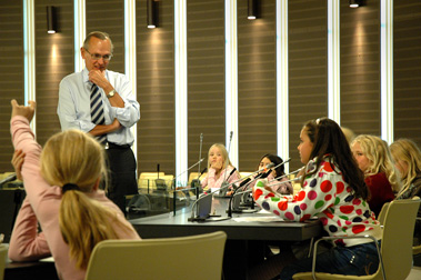 Onsdag den 26. september kom pigerne på besøg i Viborg, hvor de kunne prøve rollen som regionsrådspolitiker for en dag. Desuden fik de blandt meget andet svar på, om regionsdirektøren har en hest og hvor regionsrådsformanden sover, inden de fik genset deres maleri. Og så fik de endnu en gang mulighed for at fortælle deres mening om, hvordan Region Midtjylland skal se ud i fremtiden: der skal ikke være krig, og der skal være væsentligt flere rideskoler, end der er i dag.