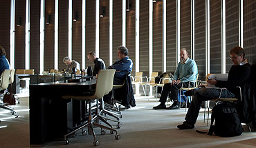 Søren Ellekær Hansen "på sin plads" som tilhører bag pressen i regionsrådssalen.