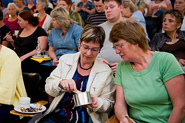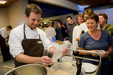 I tirsdags skød Bente Sloth og hendes medarbejdere så det store omlægningsprojekt i gang. De havde inviteret Torsten Schmidt fra den fornemme Århus-restaurant Malling & Schmidt på besøg. Han fortalte dem om, hvordan han arbejder, og så lod han dem smage på nogle af de ting, han kan. For eksempel blev der serveret smagsprøver på en ret, der bestod af grød, lavet på blandt andet byg, spelt og brændenælde, serveret med skaldyrsbouillon og usødet ymerdrys. Meningen var, at han skulle inspirere køkkenmedarbejderne til at få lyst til at prøve noget nyt.