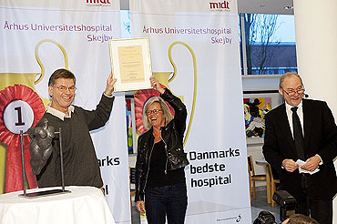 Prisen for Danmarks Bedste Hospital blev overrakt torsdag den 10. december på Århus Universitetssygehus, Skejby, af chefredaktør Kristian Lund, Dagens Medicin