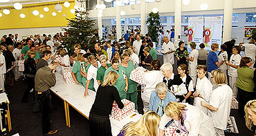 Udnævnelsen til Danmarks bedste hospital blev fejret med en reception, hvor nogle af det store hospitals ansatte kunne være til stede.