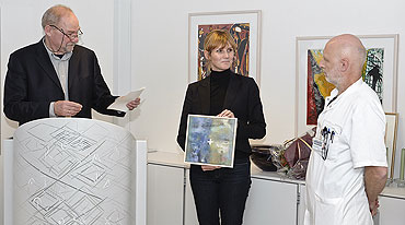 Chefredaktør Kristian Lund (t.v.) begrundende tildelingen. En tilfreds socialminister Benedikte Kjær så perspektiver i klinikkens arbejde og overrakte beviset til progfessor Morten Sodemann.