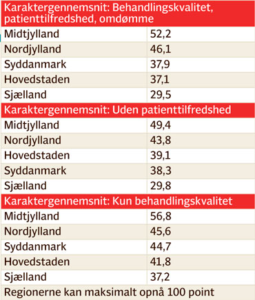 Herudover har Dagens Medicin også optalt de enkelte regioners hospitaler samlet på behandlingskvalitet og omdømme. Som det kan ses på nedenstående tal, ligger Region Midtjylland her på en flot førsteplads.